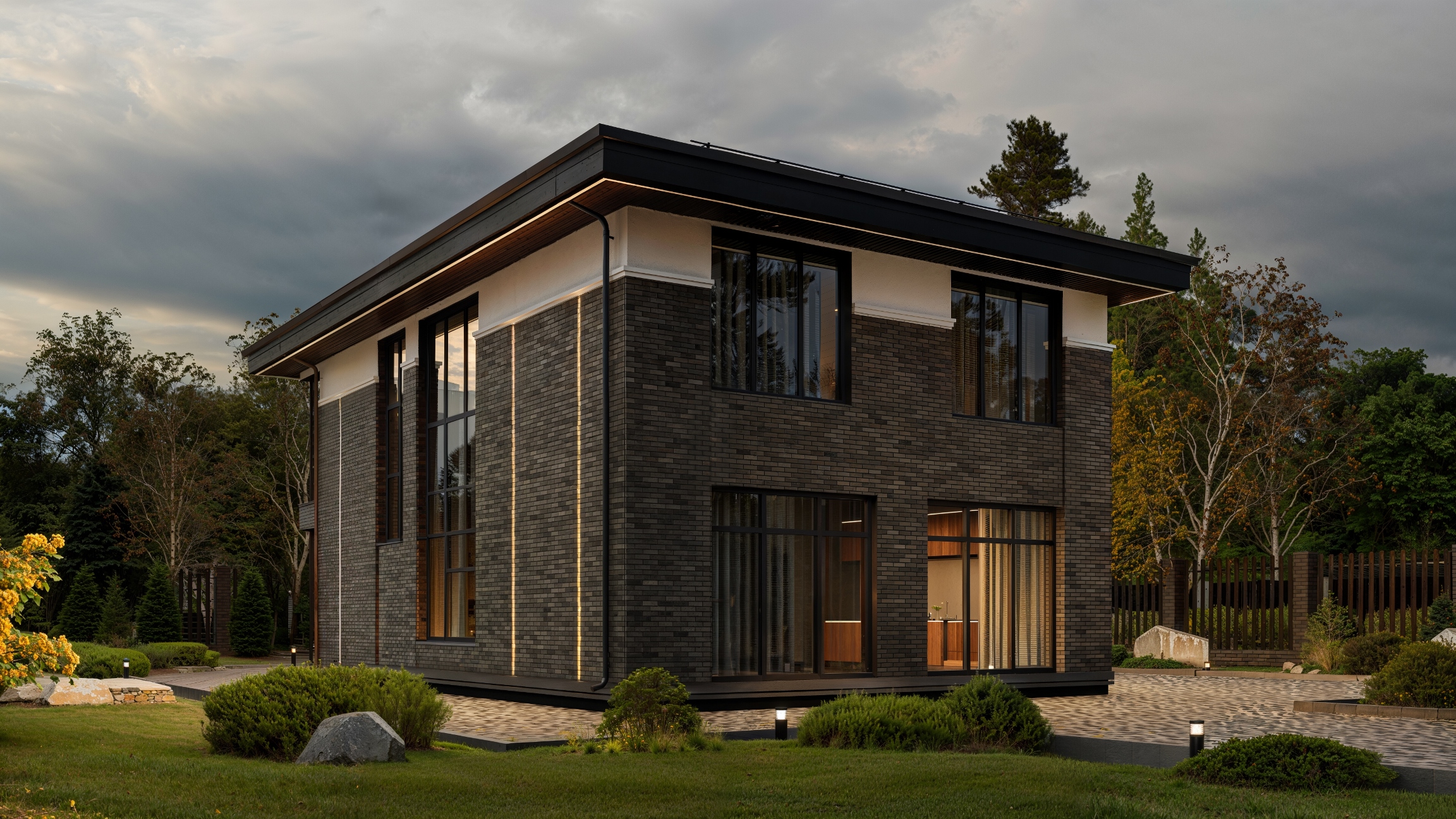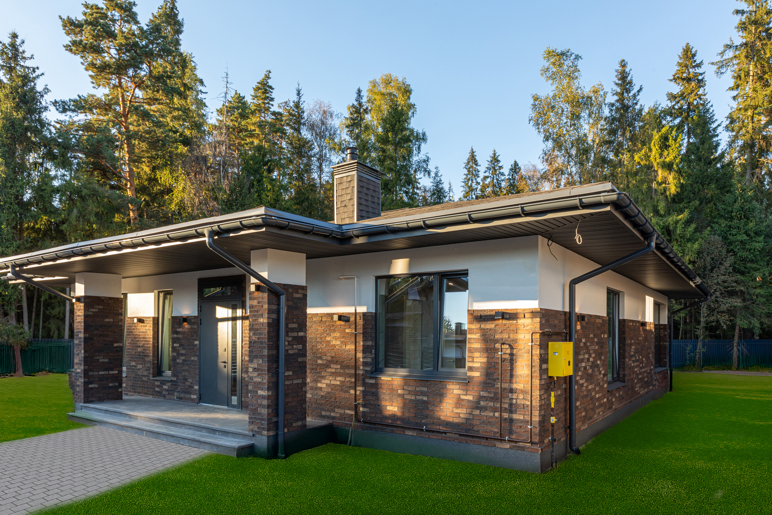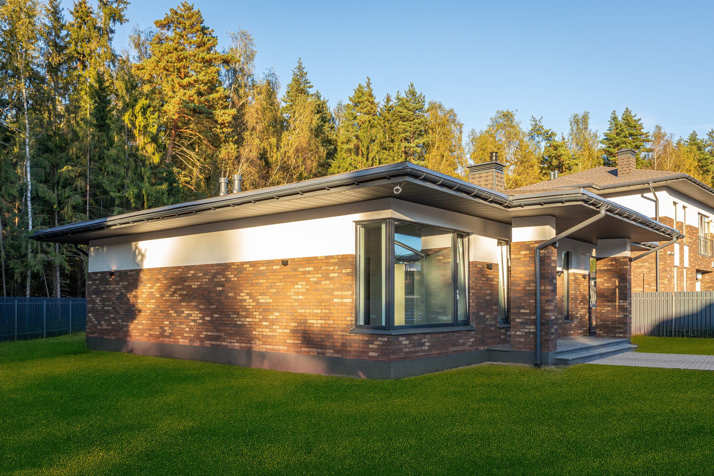 - Благоустроенные участки с газоном, туями и брусчаткой