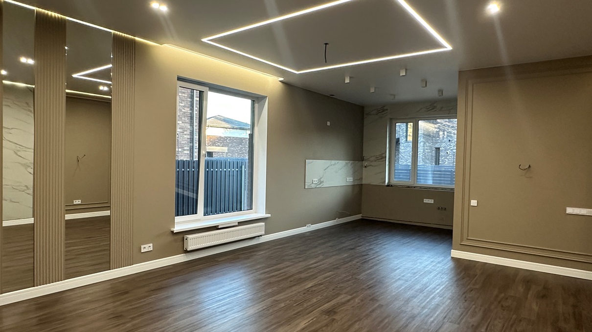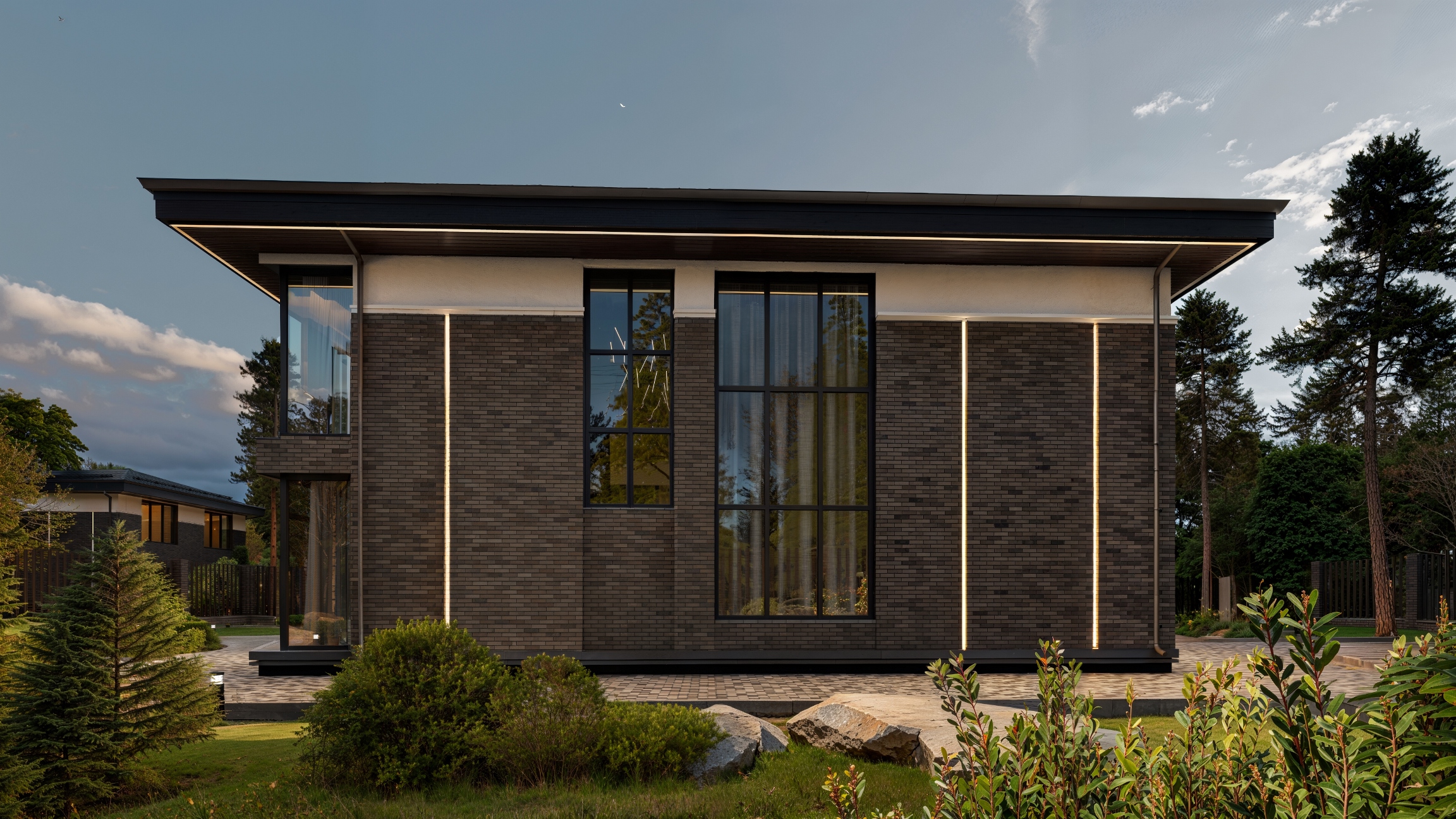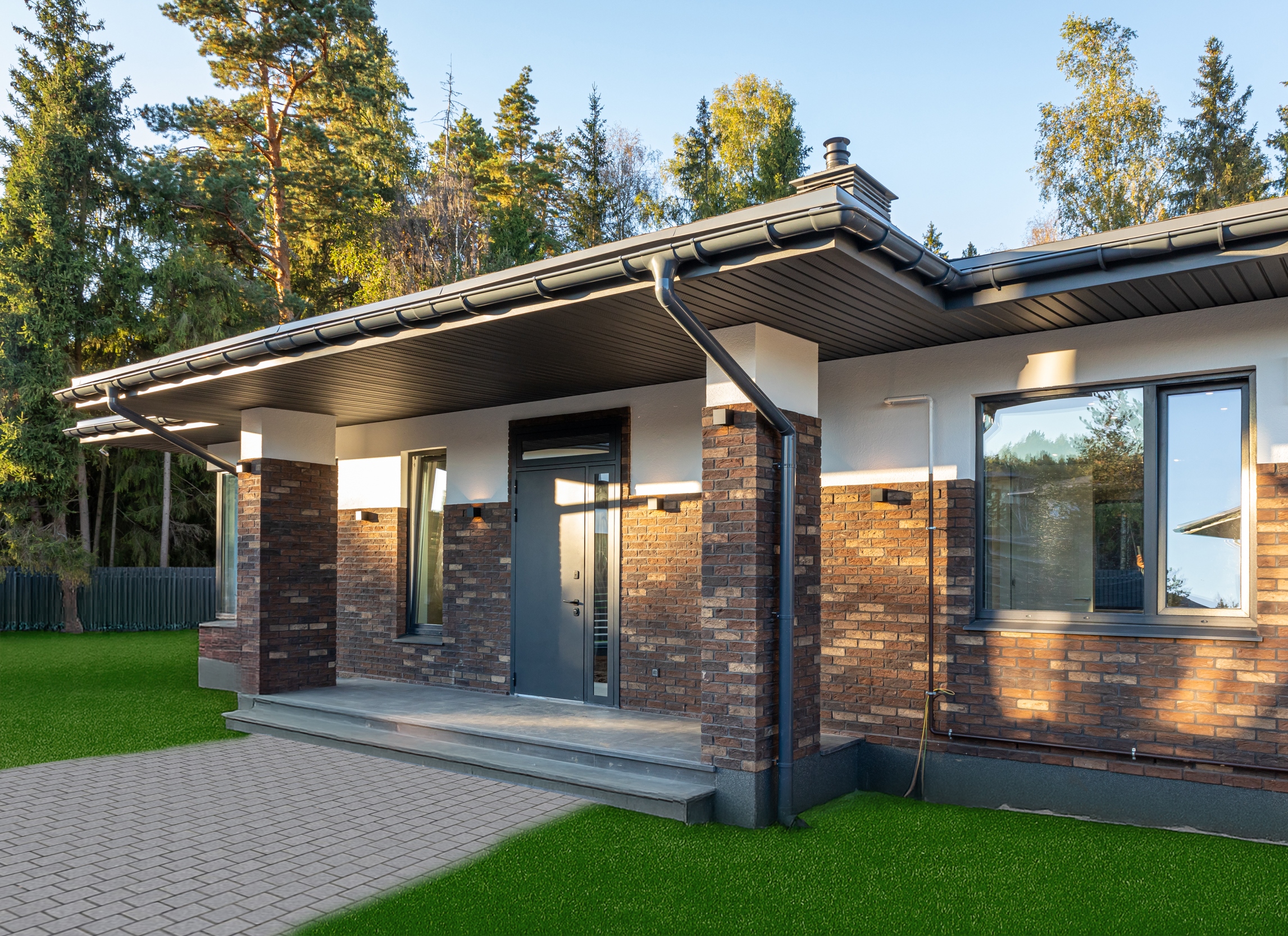 - Благоустроенные участки с газоном, туями и брусчаткой