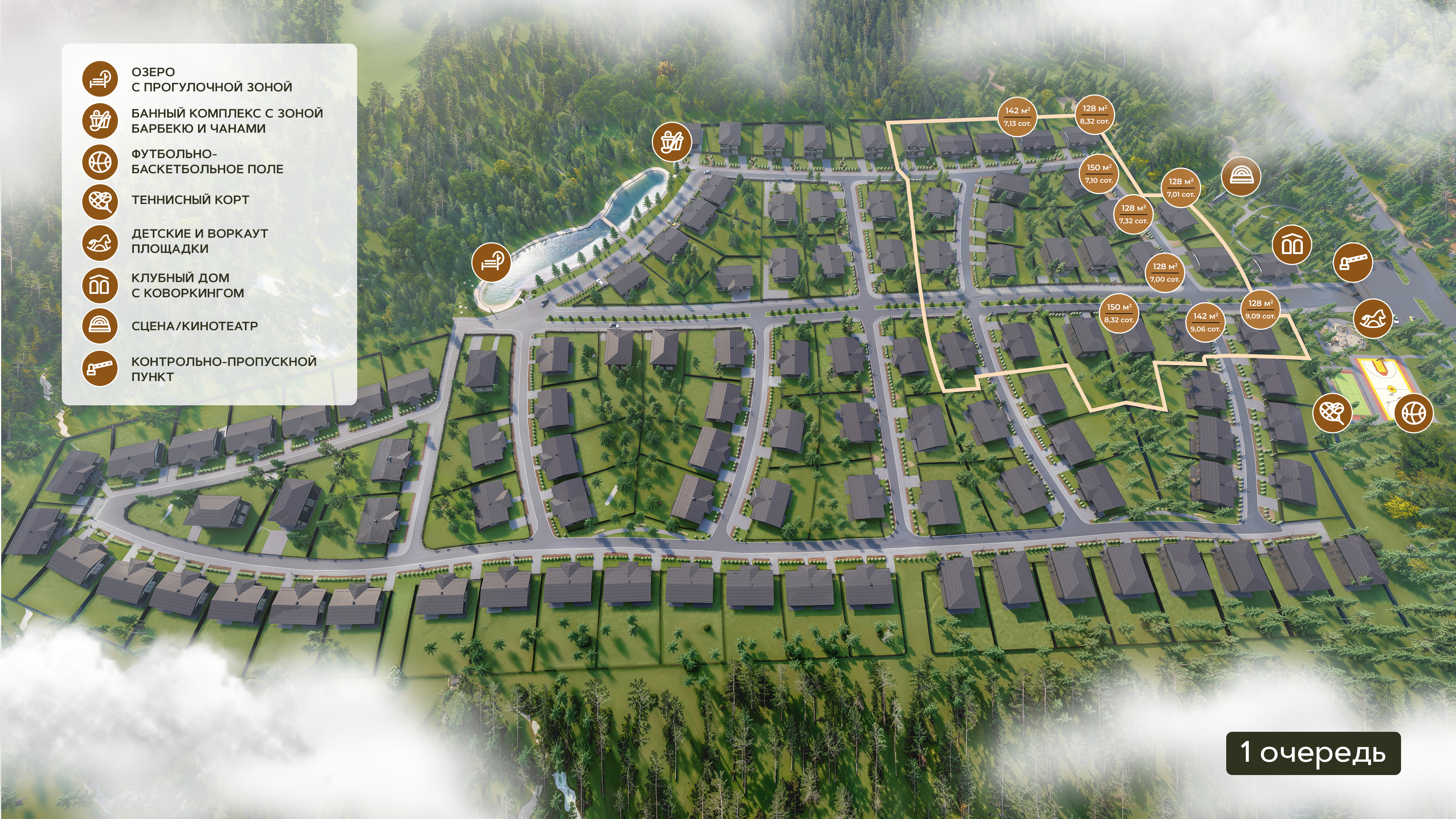 Мы предлагаем всё необходимое для комфортной жизни: собственное озеро с пляжем, спа-зона, спортивные площадки, коворкинг и клубный дом, где вы сможете проводить время с соседями и друзьями